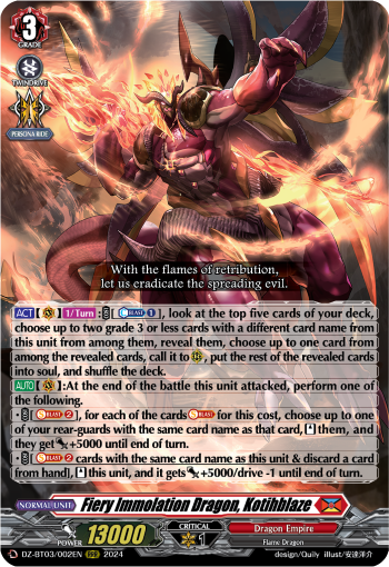 (002) Cardfight Vanguard Dimensional Transcendence Single: Fiery Immolation Dragon, Kotihblaze [D-Format] (V.1 - Triple Rare) Triple Rare