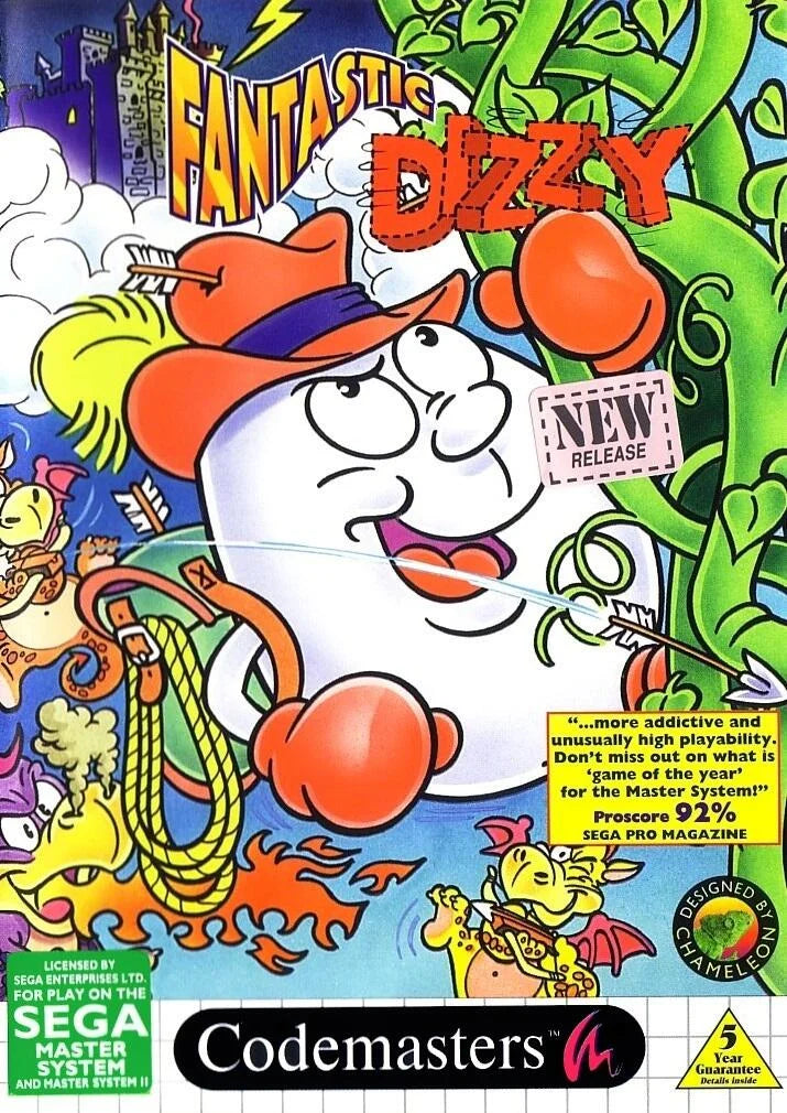 Dizzy's cartoon adventure in Zakeria - a magical kingdom ruled by the evil wizard Zaks. Explore the mysterious diamond mines, fabulous caverns, dragon's lair, cloud castle, encounter strange magicians, wizards, trolls, pirates, leprechauns and many other weird and wonderful creatures.