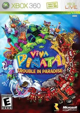 That rotten Professor Pester and his Ruffians have snuck into Pi+â-¦ata Central, and in a botched attempt to steal all the Pi+â-¦ata records, they've ended up erasing them all instead! It's up to you to help restore the records, and keep those candy-filled pi+â-¦atas coming! Viva Pi+â-¦ata: Trouble in Paradise is the sequel to Rare's gardening simulator, Viva Pi+â-¦ata. The overall game remains the same - lure pi+â-¦ata by tending your garden. Some animals are attracted by the appearance of others, while others will come because of the types of plants that you grow. As you progress, the more valuable your garden will become - and that means that Professor Pester and his Ruffians will turn up to try to vandalize it, either causing fights with pi+â-¦ata, or smashing your most expensive object. Trouble in Paradise includes all the pi+â-¦ata from the original game, as well as some new species that can only be found by traveling to the Dessert Desert or the Pi+â-¦arctic. These pi+â-¦ata are wild, and need to be lured with bait and caught. Unfortunately, new Sour Pi+â-¦ata are also waiting to come in and cause problems for you as well. A new feature of the game is Pi+â-¦ata Vision, which uses the Xbox Live Vision Camera to scan in cards. These cards can drop in an assortment of items into the game - anything from new pi+â-¦ata, to garden objects, to tools - even shop discounts! Players can even take a photo of an object in their garden and transform it into a Pi+â-¦ata Vision card to send to a friend. The game also features two mini-games - a Pi+â-¦ata racing game, and Pi+â-¦ata contest game. Winning these mini-games increases your pi+â-¦ata's value.